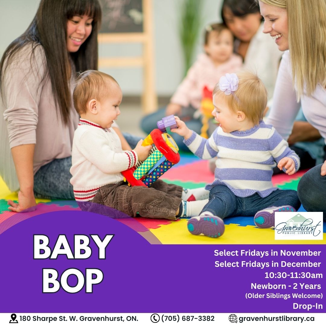Join us at the library every Friday for baby story time. Connect with other families while enjoying sensory play, stories, songs, and fun new lap bounces to share with your little one.