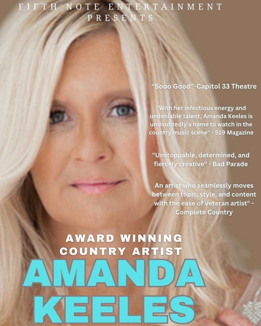 Presented by Fifth Note Entertainment. Described as fiercely creative, Amanda Keeles has twice taken the top spot in The Canadian Open Country Songwriting Contest, featured on SiriusXM Canada's Top of the Country, IHeart Radio, SiriusXM Canada Talks...